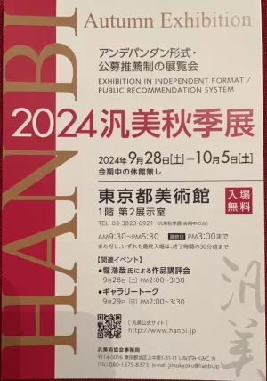 汎美秋季展のご案内(9/28-10/5) 更新日:2024-09-27 公開日:2024-07-29 展示のお知らせ 上野の東京都美術館にて開催される「2024汎美秋季展」に参加します。 2024年9月28日(土)〜10月5日(土)9:30〜17:30(最終日15:00まで)最終入場30分前までにお願いします。会期中の休館なし入場無料東 […] 続きを読む